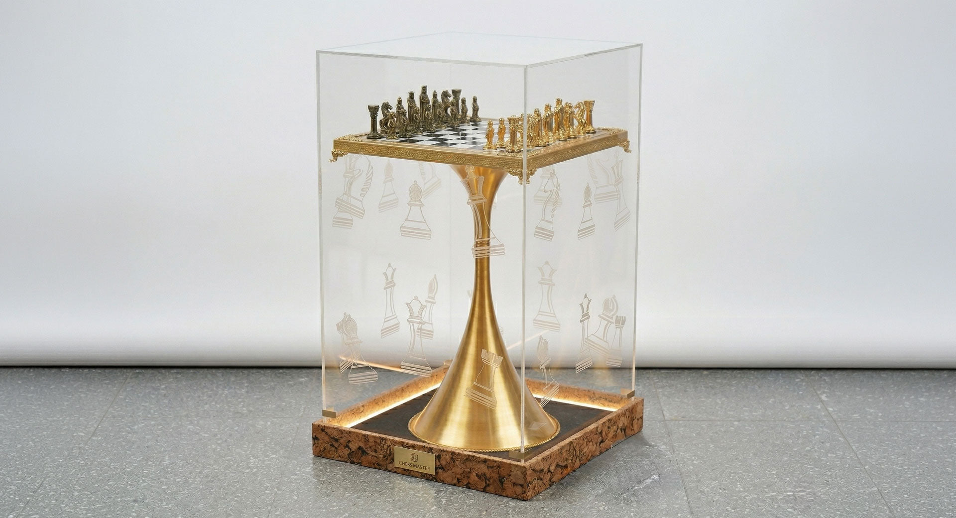 This is not just a chess set — it is an experience. Elevated on a sculptural pedestal and framed within a refined display structure, it commands attention even in stillness. Whether played or displayed, it becomes the focal point of the room.