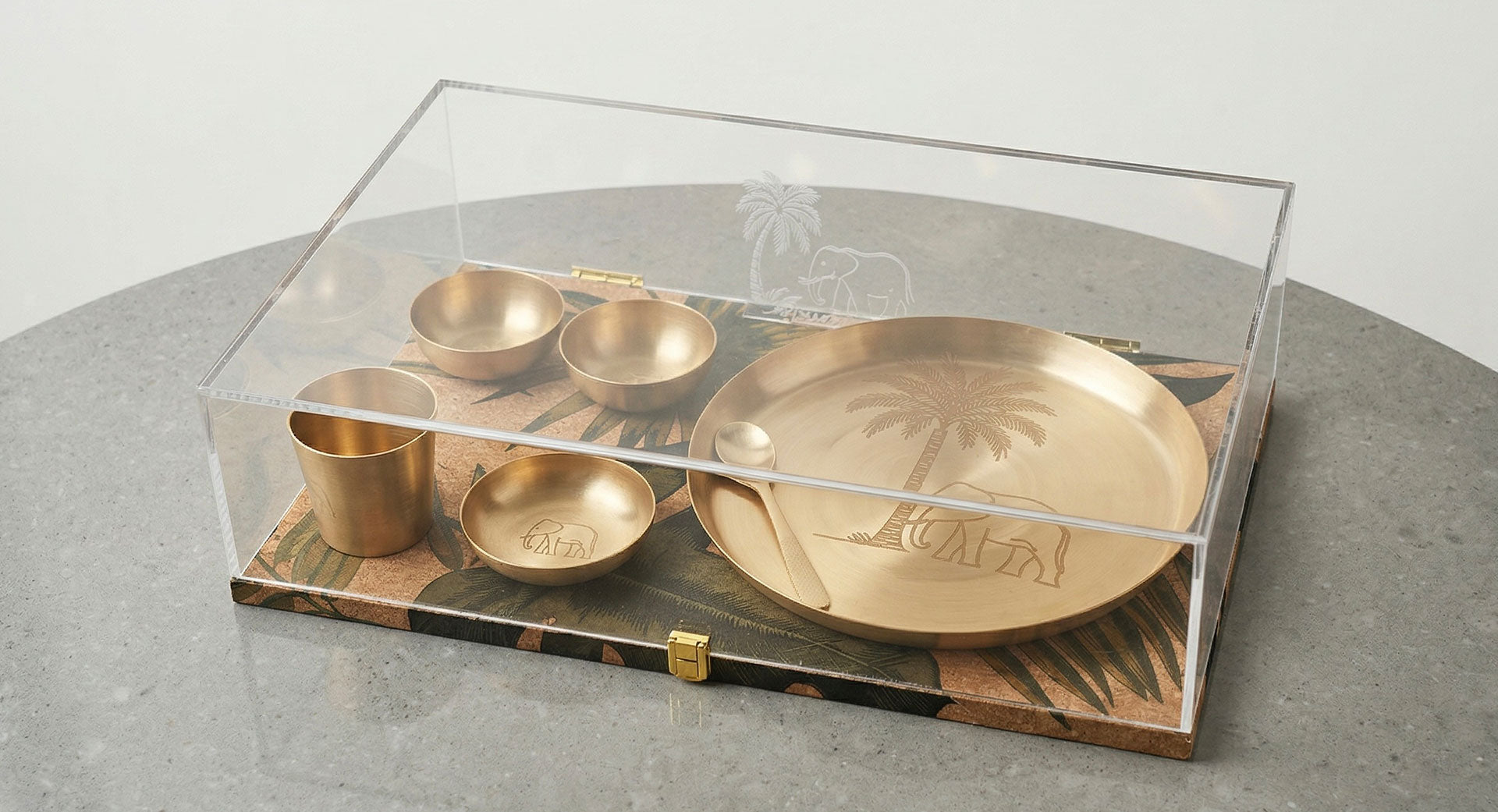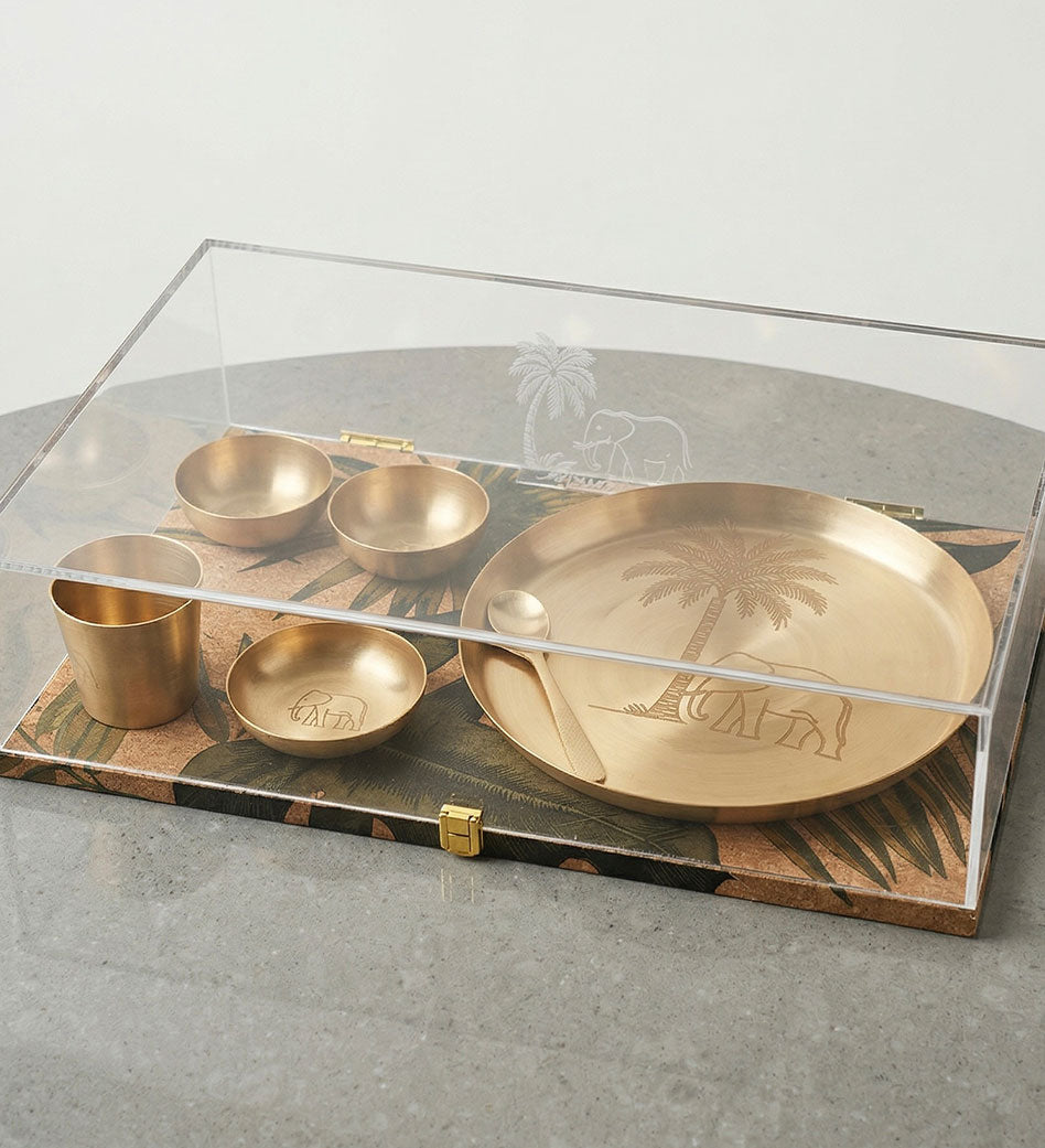 Inspired by centuries-old Indian dining traditions, this set embraces simplicity with intention. The subtle engravings and balanced proportions reflect harmony — allowing the material itself to become the hero.